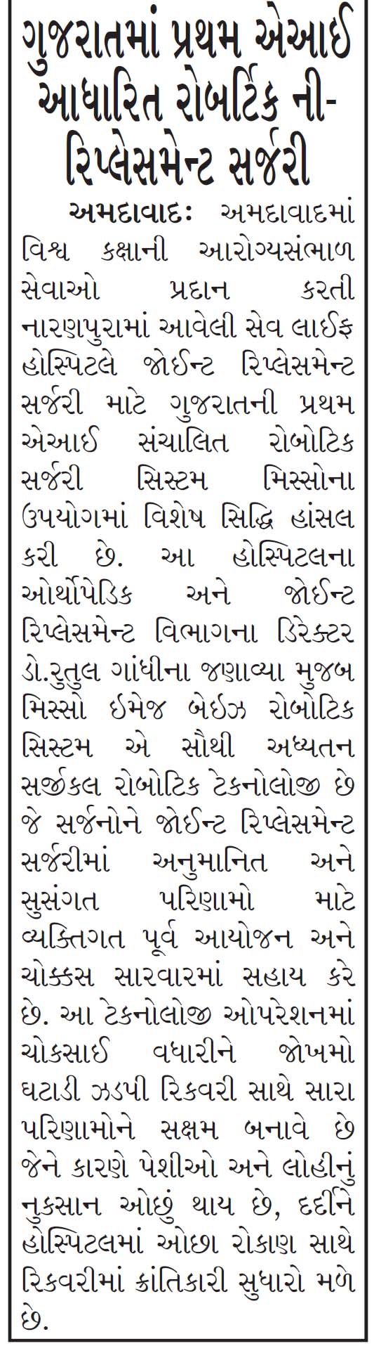 Precise cutting with MISSO robotic system represents a significant advancement in Joint replacement surgery. This innovative technology